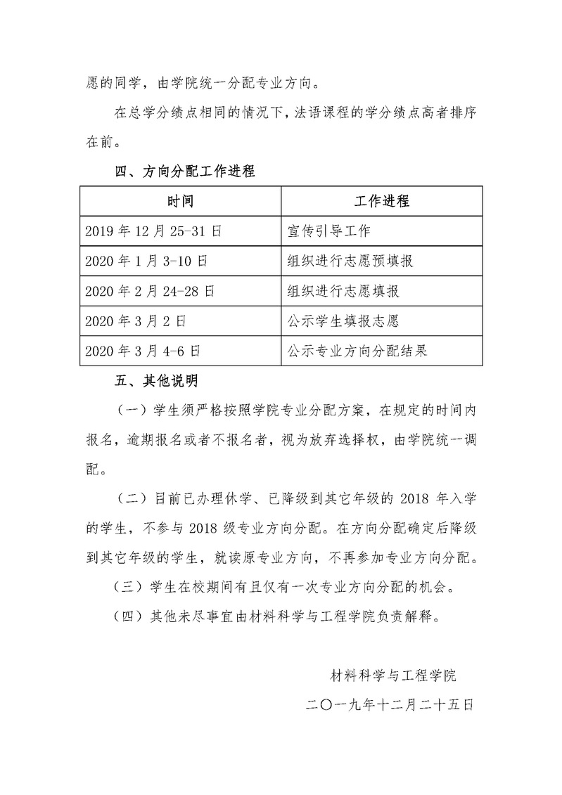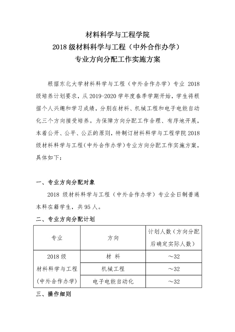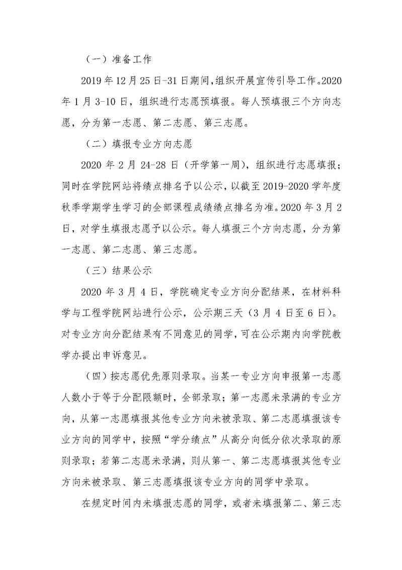 材料科学与工程学院 2018级材料科学与工程(中外合作办学)专业方向分配工作实施方案