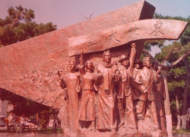 Dans le centre du Jardin 129, au sein de l'université du Nord-Est, se trouve une statue de bronze : Dans le froid de l'hiver, beaucoup d'étudiants du NEU, brandissant le drapeau de l'université, bras dessus, bras dessous, côte à côte, s'avançaient à grand pas au premier rang du défilé. Mâles silhouettes et regards fermes, il semble que les slogans qu'ils crient résonnent encore dans nos oreilles——
