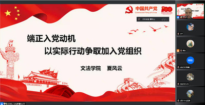 本次培训由商淼主持。培训开始,夏风云以习近平总书记在庆祝中国共产党成立100周年大会重要讲话为引,从正确的入党动机、入党条件以及入党手续这三个方面为同学们详细讲授了入党积极分子应如何“端正入党动机,以实际行动争取早日加入党组织”。随后,他采用短视频的形式,向大家展示了疫情期间闻令而动、亮明身份、冲锋在前的先锋党员和党组织,并通过介绍《共产党员是怎样炼成的》一书,为同学们加深了对入党流程的理解。他表示,同学们要向“优秀”学习、向“典型”看齐,树立正确的入党动机,切忌心浮气躁、朝三暮四,要迈稳步子、夯实根基、久久为功,以实际行动争取早日加入党组织。