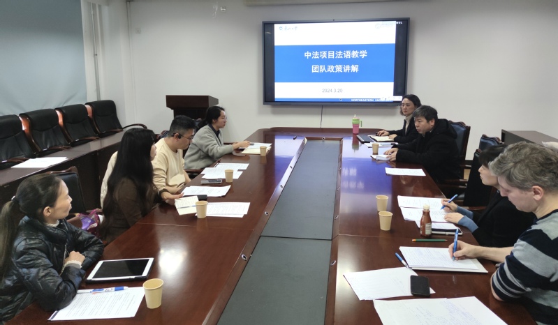 2024年3月20日,材料科学与工程学院中法项目召开法语教学团队政策讲解会,伊诺法语教学团队,法语外教团队,材料科学与工程学院副院长杨波及中法办公室工作人员参会。