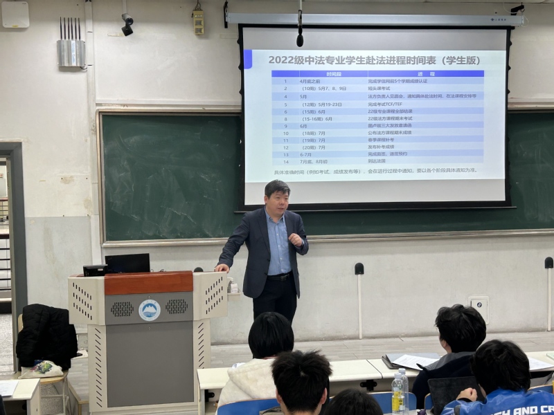 杨波就保研相关事项向学生进行政策解读,强调法语在毕业论文、毕业答辩等方面的重要性,同时提醒学生安排好在法国的学习和生活,保持良好学风,尽快了解法国院校的制度和规范,积极融入新的学习环境。